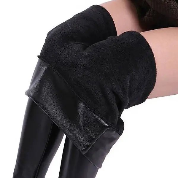 Kunstleder Damen Leggings mit warmer Fleece Fütterung