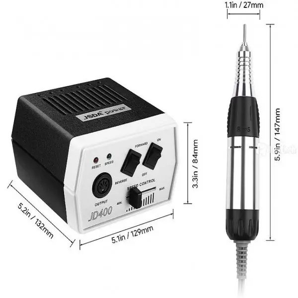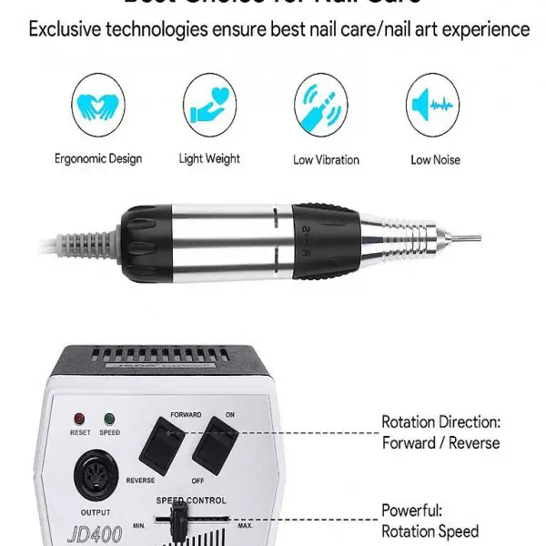Steuergerät reguliert werden. Unabhängig von der gewählten Geschwindigkeit, läuft der Nagelfräser dauerhaft ruhig
