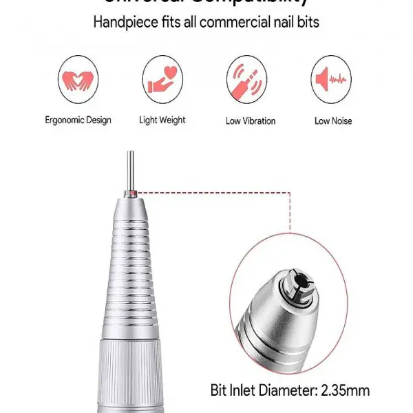 Ergonomisches Handstücicht, geräuscharmes Handstück mit minimalster Vibration. Rechts- und Linkslauf, geeignet für Rechts- und Linkshänder. Das integrierte Anti-Überhitzungssystem sorgt dafür, dass das Handstück sich auch nach einer langen Benutzung nicht erhitzt.k mit Schnellverschluss - Optimales Gew