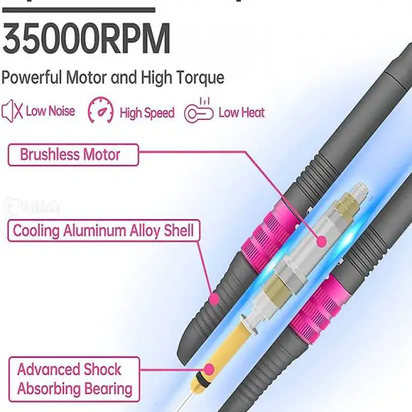 Überlastschutz: Wenn das Handstückschloss gelöst ist, wird der Nagelfräser Stromausfall und die Anzeigelampe blinkt rot und grün, um daran zu erinnern. Schützen den