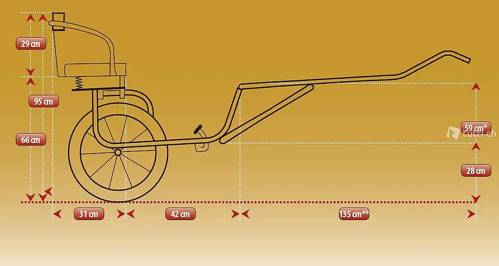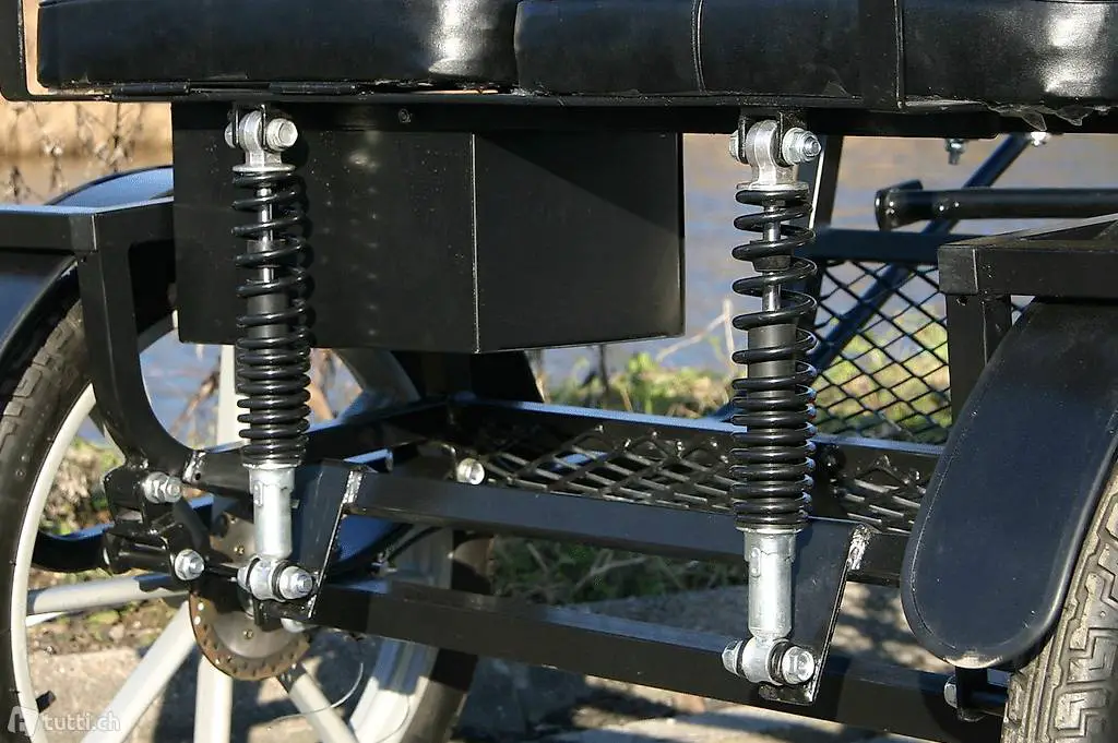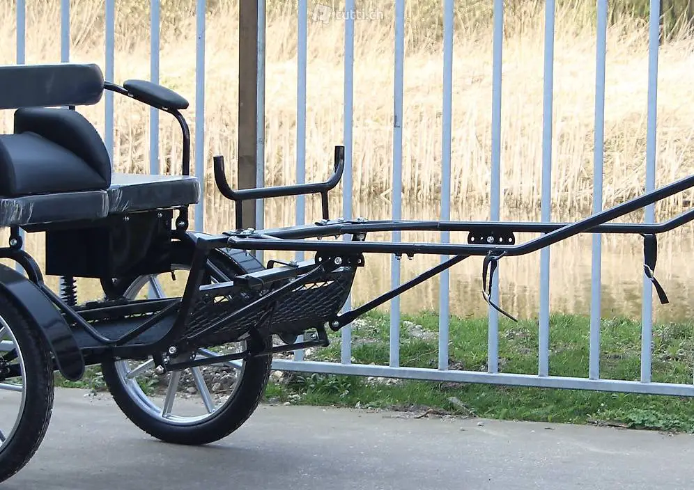 Eleganter Sulky mit Scheibenbremsen, mit Bockkeil, Scheren in der Länge, Breite und Höhe verstellbar, gefedert
