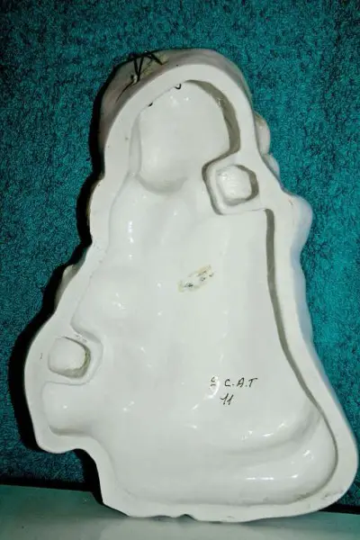Steingut. Das Ganze ist aus den 30iger Jahren. Bitte beachten Sie, dass das Bild wunderschön aussieht und absolut keine Macken hat, Masse: H 26cm, B 19cm, T 6cm. Wir haben unser traditionsreiche