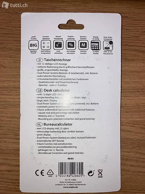 Taschenrechner der Marke Stylex neuwertig und originalverpackt.