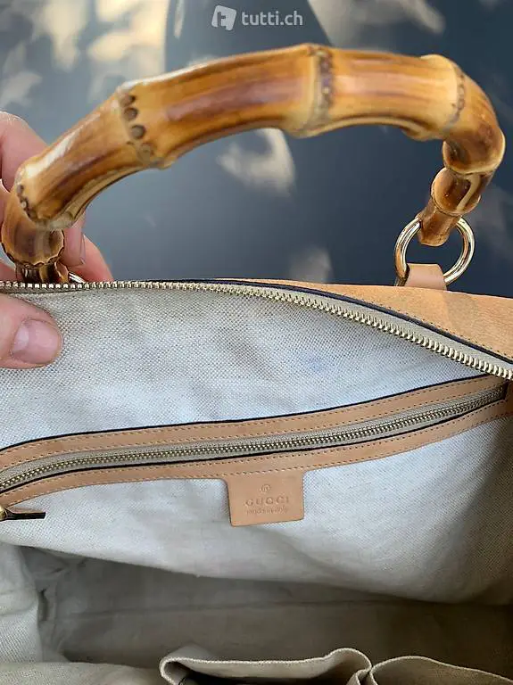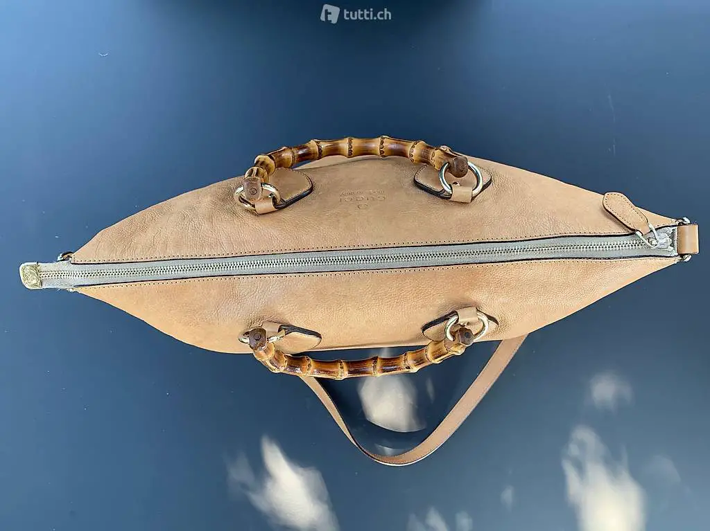 Gucci im Farbton Sahara. Die Masse sind 41x30x11 BxHxT, das Innenmaterial ist ein beiger robuster