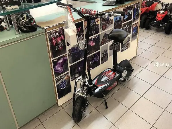 Achtung: Dieses Trotti ist für den Strassenverkehr zugelassen. Ab 14 Jahre mit Töffliausweis M zu fahren, ab 16 Jahren ohne Ausweis. Wir empfehlen unbedingt das Tragen eines Fahrrad-Helmes.