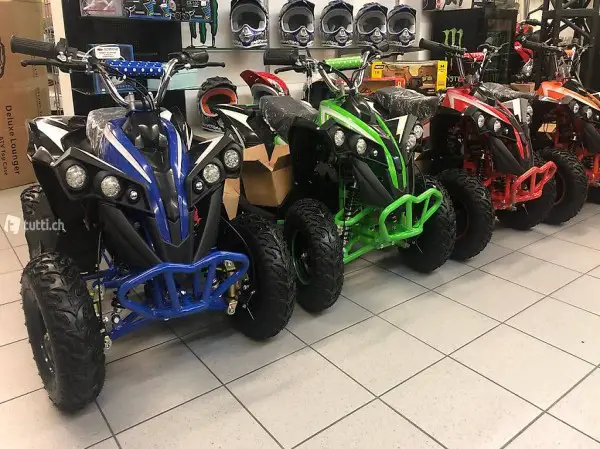 Das Quad ist weitgehend vormontiert, Lenker, Räder sowie ein paar andere Kleinteile müssen noch festgeschraubt bzw. kontrolliert werden. Der Zeitaufwand für die Endmontage liegt bei ca. 2 Stunden. Selbstverständlich können wir dies gegen einen Aufpreis von Fr. 100.00 für Sie erledigen.