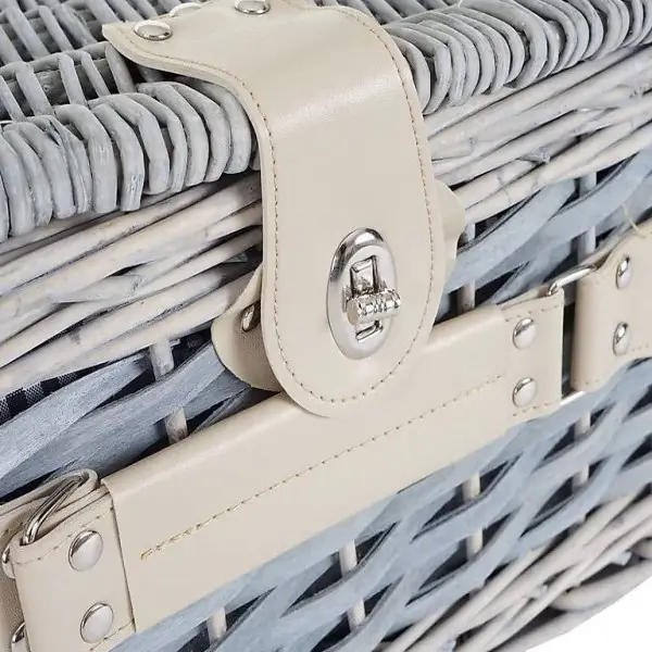 Masse (HxBxT) (ca.): Gesamtmasse: 19x48x30 cm. Innenmasse: 15x46x25 cm. Picknickdecke: 128x143 cm. Inhalt: 4x Porzellan-Teller. 4x Porzellan-