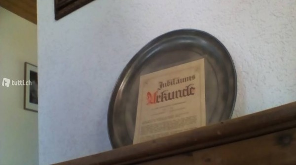 Zinnkanne 2 ihr Inhalt limitiert 95%zinn geeignet für Lebensmittel dazu gehören 6 trinkkelche ein rundes Services platto Durchmesser von 40 cm hergestellt für 700 Jahre Schweiz mit Unikat kann auch einzeln verkauft werden sehr gutem Zustand abholpreis 490.-