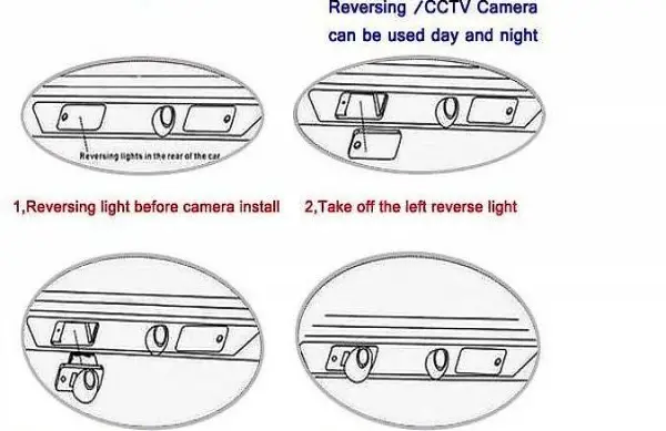 1. Schliessen Sie das integrierte Kennzeichenlicht der Kamera an die Stelle an, an der das serienmässige Kennzeichenlicht angeschlossen war, um die Stromversorgung zu gewährleisten