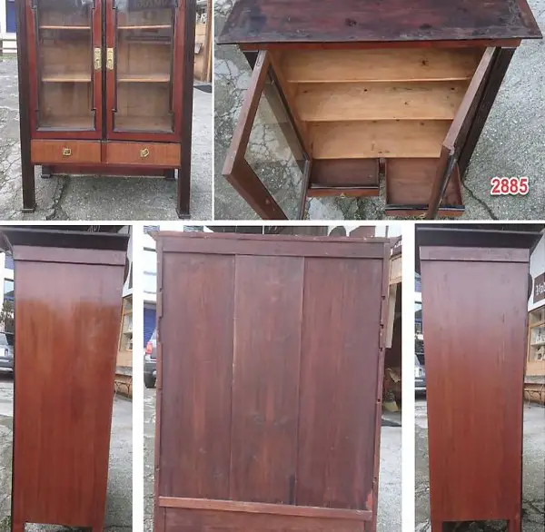 (2885) Vitrine Furnier (teilw. Gerissen), dunkelbraun,