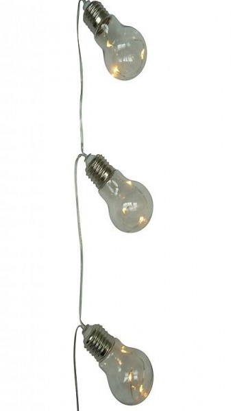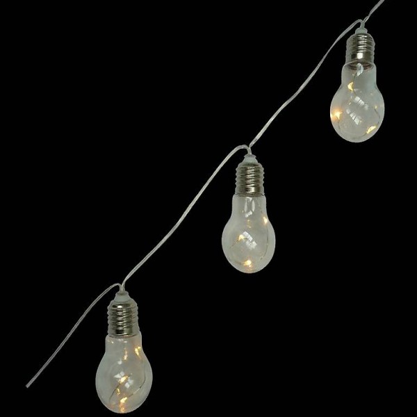 Lichterkette mit 10 Led Glühbirnen. Die Glühlampen leuchten in warm weissem LED Licht. Schnell und einfach ortsunabhängig installiert dank praktischem Batteriebetrieb.