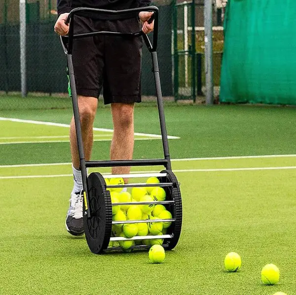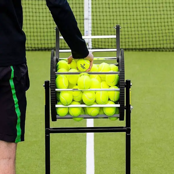 85-Tennisbälle Kapazität - Dieser Tennisball Roller kann bis zu 85 Tennisbälle halten, so dass Sie genug Bälle auf dem Tennisspielplatz haben. Der hochwertige Tennisball Hopper ist ein Muss für Tennistrainer. Alle Tennisbälle können mit einem abschliessbaren Deckel gesichert werden.