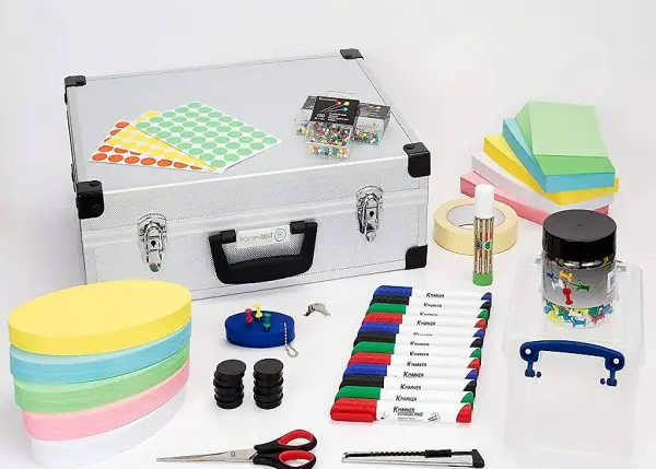 2.300 Teile (eckige und ovale Moderationskarten, Flipchart- und Whiteboard-Marker, Pinnnadeln &