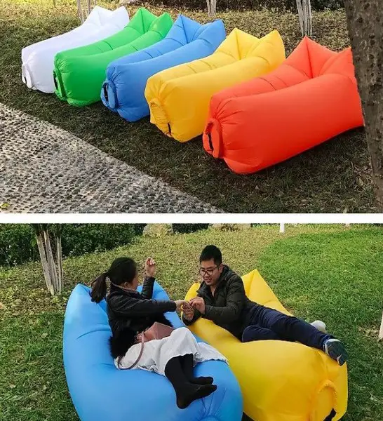 Das warme Wetter kommt und das bedeutet viel Zeit im Freien. Ideal für Camping, Faulenzen am Strand , zuhause, Musikfestivals usw. Schneller Aufblasbarer Liegesack, in nur 10 sekunden ist dein Strandsofa bereit.