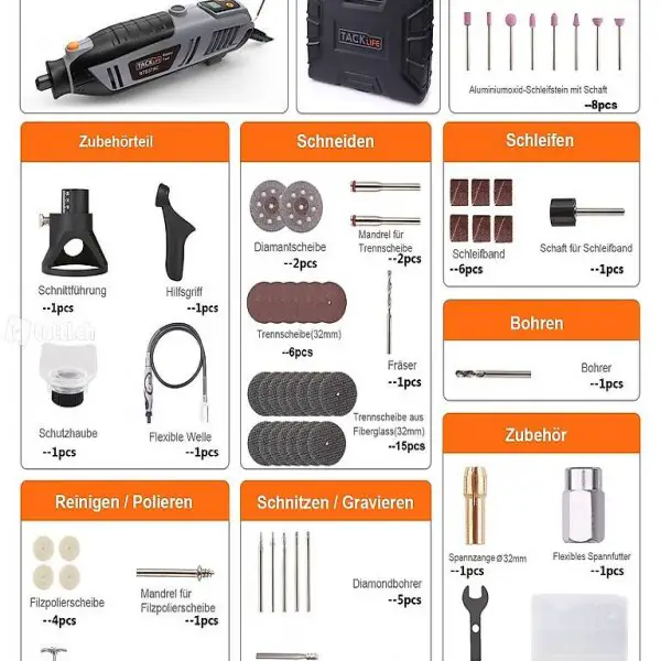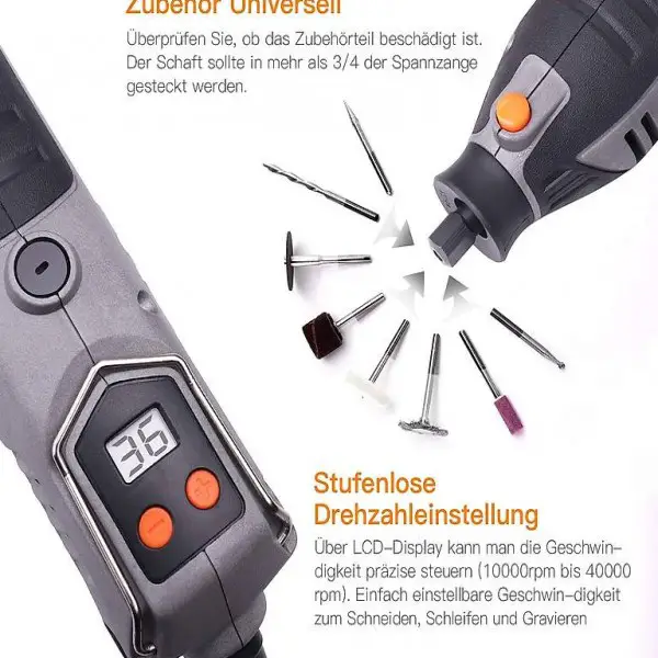 Drehzahl: Leerlaufdrehzahl: 10000-40000 U/min. Je höher der Wert, desto kraftvoller ist das Multifunktionswerkzeug.