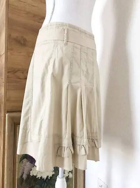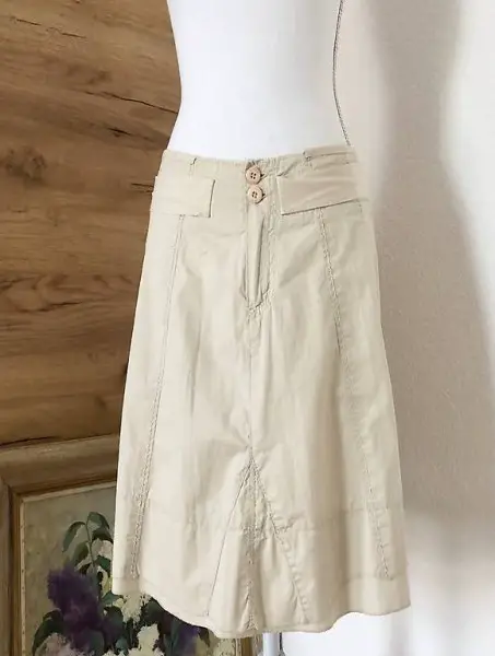 Schöner Sommer Rock in einem frischem Beige mit dekorativen Teilungsnähten, mit Bindegürtel und mit vielen kleinen Details.