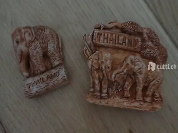 -Magnete 2 Elefanten Thailand, 6 Whiskas-Katzen, Doktorfisch Holz handbemalt Malediven, Preis pro Set