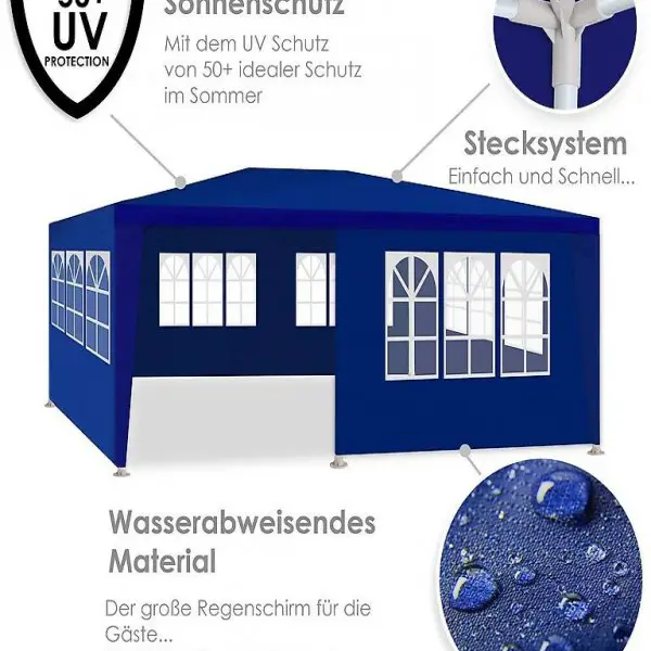 Gartenzelt | Partyzelt | wasserabweisend wasserdicht | UV-Schutz 50 + | Ideal für Garten, Terrasse, Party, Veranstaltung | Blau