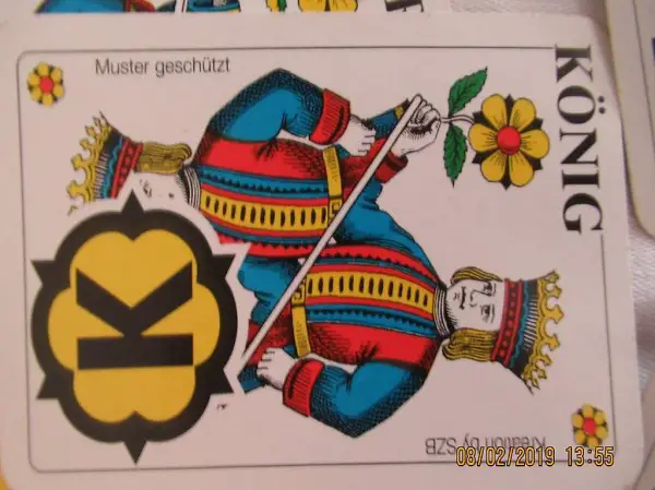 Deutsche arten, Schieber Karten, Deutschschweizer Karten, Schellen, Eicheln, Rosen, Schilten, sehr speziell, ideal für Blinde und für Leute mit Sehschwäche, vollständig, sehr guter Zustand,