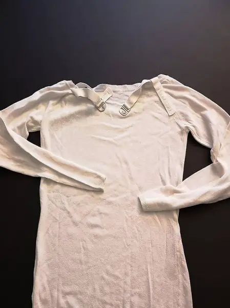 FARBE WEISS. MIT VERKROMTER LOGO VERSCHLUSS AUF DEN SCHULTER(2×).