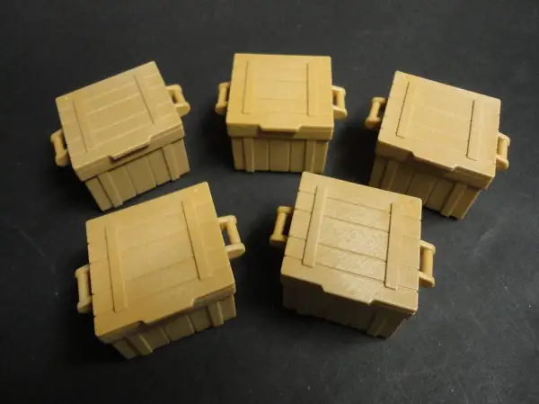 Diese Kisten wurden nie bespielt, sind neuwertig und in sauberem Zustand. Sie dienten bloss zur Ausstattung und Ergänzung verschiedener Playmobilwelten wie beispielsweise der Piraten- und Westernwelt.