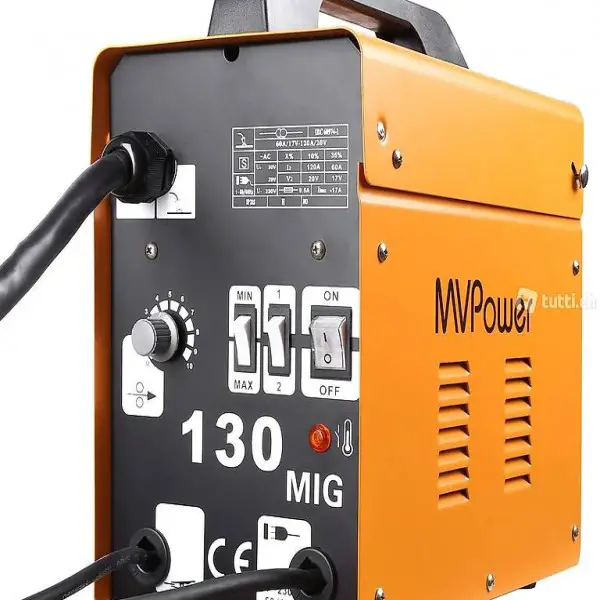 Fülldraht Schweissgerät mit Zubehör MIG 130 Elektrodenschweigerät 230V 50-120A inkl. Fülldraht, Ersatzdühsen, Masseklemme, Brenner, Ventilatorkühlung, Schweissschirm,