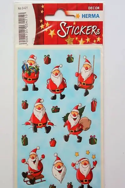 Schöne und lustige Weihnachtsmänner und Geschenkspaket Aufkleber in verschiedenen Grössen. Zum Basteln, verzieren etc. selbstklebend. Hübsch auf Geburtstagskarten, Geschenke, Schulbücher, Einladungen,