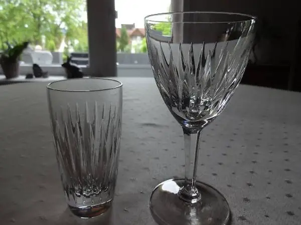 Bleikristall und von Hand geschliffen. Alle Gläser sind in einem neuwertigem Zustand und es sind keinerlei Beschädigungen vorhanden. Die