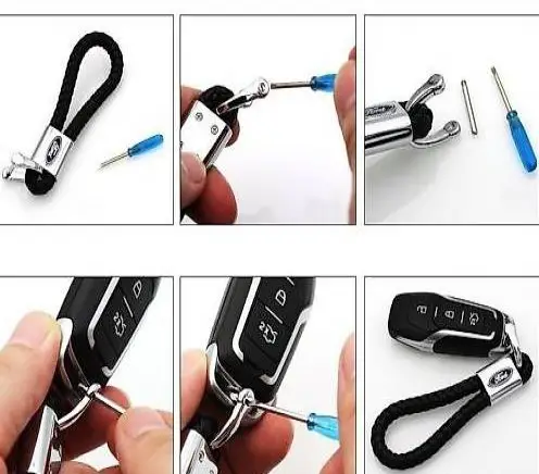 Handgemachte stylischer Schlüsselanhänger in Leder und mit einer Chromschelle. Es wird mit einer Universalkarabiner geliefert und wird mit einer kleinen Schraube am Karabiner am Scglüssel oder am Schlüsselringe festgemacht. Ein Mini Schraubendreher ist ebenfalls im Lieferumfang entahlten.