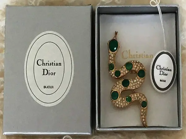 Schlangenbrosche, NEU, sehr schön, mit Stempel, goldfarben mit Strasssteinen, l 7cm, Originalerpackung, Tel. 061 711 95 88