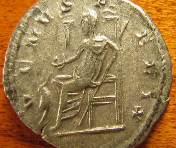 Da haben sie die Gelegenheit, eine altrömische Münze zu kaufen, welche ganz am Anfang des Christentums im Umlauf war, denn diese Silbermünze war im Umlauf zwischen 253 und 258 nach Christus. Diese Münze hat die Originalpatina von 1750 Jahren, gewisse normale Abnutzungsspuren