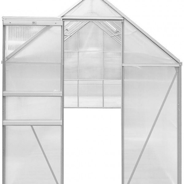 Gewächshaus aus eloxierten Aluminiumprofilen und wärmedämmenden Hohlkammerstegscheiben.