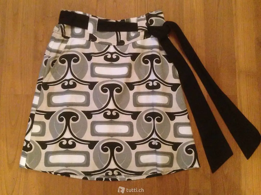 , 2 Seitentaschen, schwarzem Stoffgürten, Grösse 34