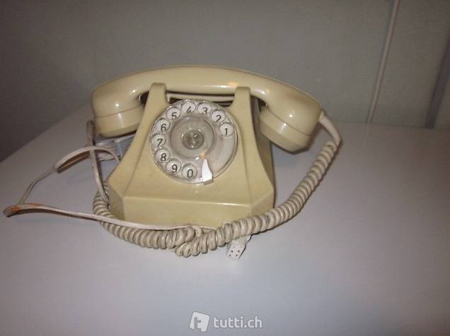 Altes Telefon mit Wahlscheibe, weiss funktioniert