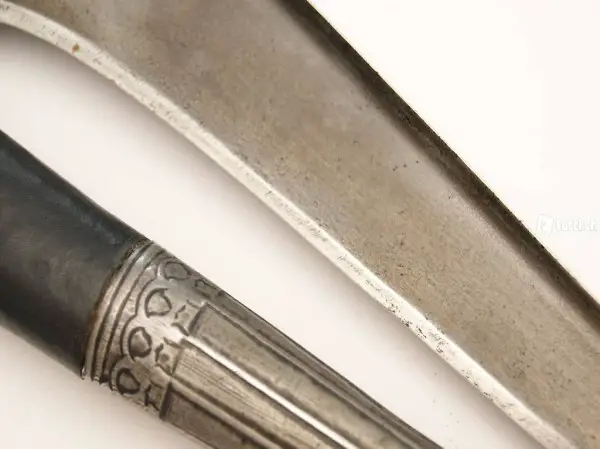 Klingenrücken mit Mittelrippe und erhabenem Rand, am Ansatz geschnittene Lilie