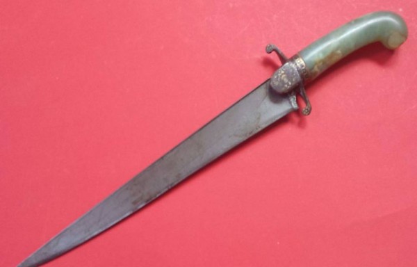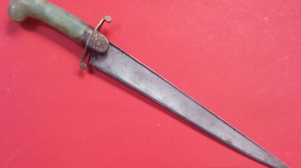 Antikes Messer - Griff aus hellgrünem Stein