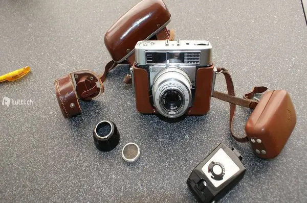 Zeiss Ikon Contaflex mit Tessar 2.8 / 50 mm Objektiv Ledertasche, Blitz etc, siehe Fotos
