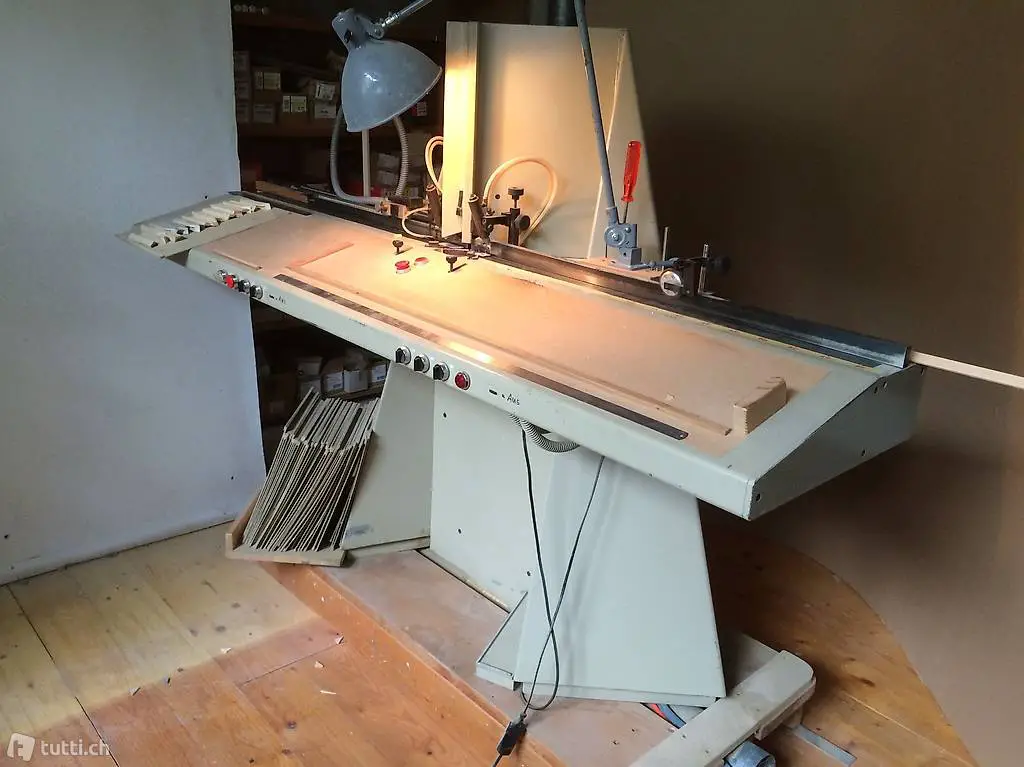 Die dazu passende automatische Verleimmaschine für Bilderrahmen finden Sie ebenfalls als Occasion Maschine bei uns oder in meinen Inseraten.