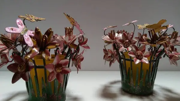 Hübsche sehr aufwendig verzierte und bemalte Windlichter aus Metal