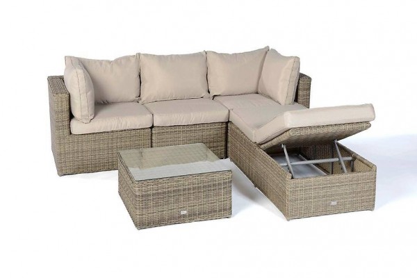 Gartenlounge ist sehr vielseitig und bietet viel Gestaltungsfreiheit. Die Rattan Liege sowie die einzelnen Rattan Elemente, sind verstellbar. Damit kann das Gartenmöbel Set aus