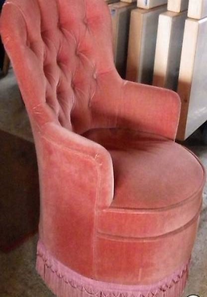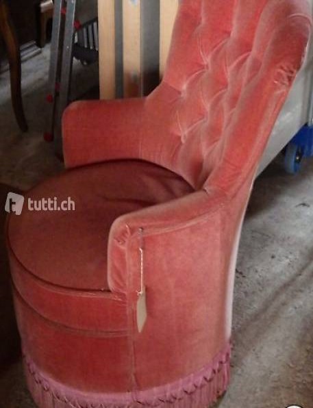 Stoff kapitoniert, sogar die Füsse sind mit einem Volant bedeckt. Der Rücken ist schön im Dreieck abgestepp, sehr ergonomisch.Hier handelt es sich um ein wunderschönes Enzelobjekt, welches klein ist und sehr gut eine leere Ecke ausfüllt. Es ist ein sehr seltenes Stück. Auf dem Preisschild stand der Preis von 3400.-, danach auf 3000 reduziert. Hier können sie dieses Stück zu einem Schnäppchenpreis erwerben.