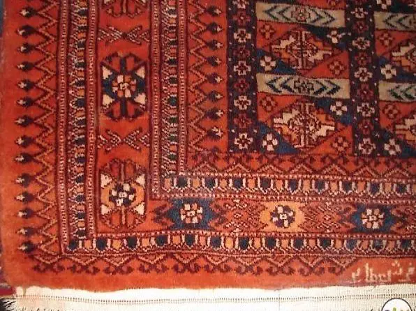 Hier haben sie die seltene Gelegenheit einen sehr feinen Wandteppich HEREKE zu kaufen, welcher ca. 50 Jahre alt ist, immer an der Wand hing, also keine Gebrauchsspuren hat. Sehr fein: 750'000 Knoten pro qm, sehr feine Wolle. Die Grösse 66x123 cm, es sind 25 geometrische Felder abgebildet, sehr typisch für Hereke-Teppiche. Edle Orientteppiche sind signiert! Dieser hier wurde vom Meister am Ende signiert, schöne klassische Signatur, der "fliegende Teppich".