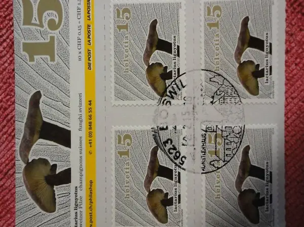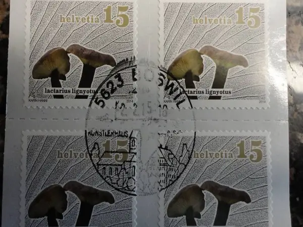 von Karin Hänni, immer noch auf dem Originalpapier, aber mit dem schönen Werbestempel alte Kirche Boswil abgestempelt, Versand ist möglich