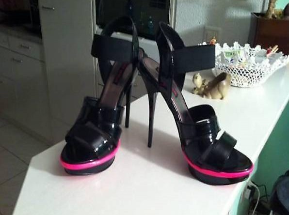 Plateau 2.5 cm und Absatz 13.5 cm.