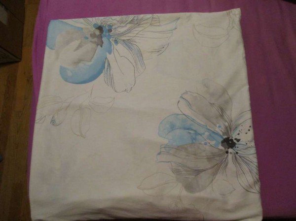 Kissen (65x65) Motive Pierrot mit Mond und Sternen Farben: Dunkelblau, weiss, gelb. Verschluss mit Knöpfen versehen. Material ist