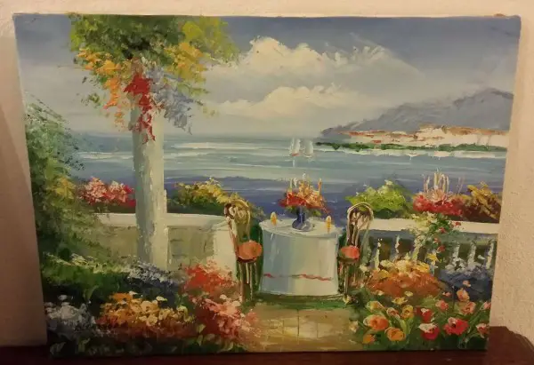 Verkaufe zwei neue wunderschöne handgemalene Gemälde mit Aussicht auf das adriatische Meer und Residenz in Süd Italien.