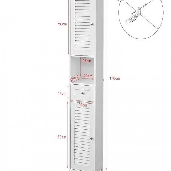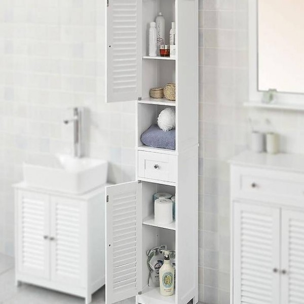 Viel Stauraum für die täglichen Dinge im Bad: Hochschrank mit 2 Türen, 1 Schublade und 1 offenen Fach