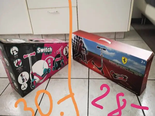 1 x Ferrari Scooter ab 3 Jahre, 3 x Höhe verstellbar, bis grösse 1.15 m und bis 50 Kg. Np: 39.95 Fr. Jetzt nur 25 Fr