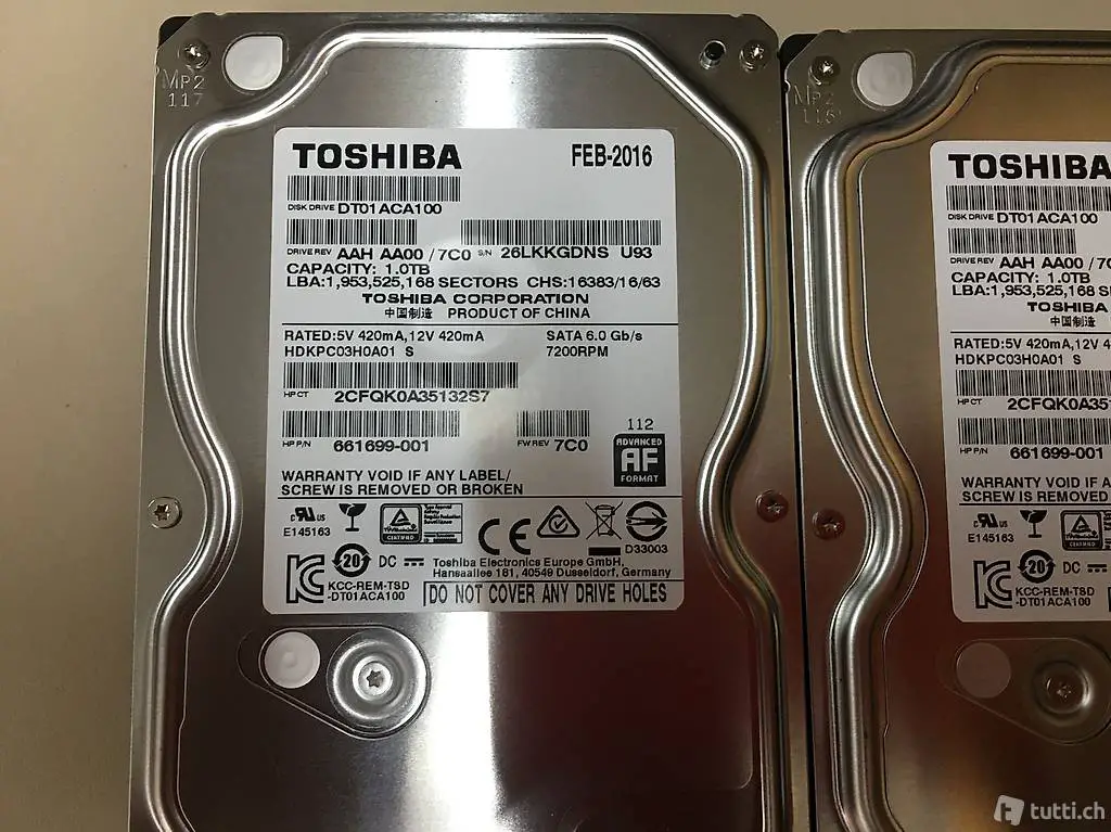 5 x 1 TB SATA Harddisk Toshiba