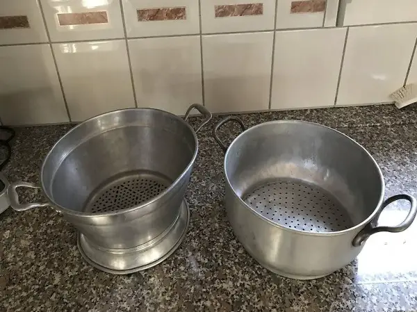 Schöne Alu Löcherbecken antik!